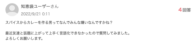 「カレー男子が増えてきているのはなぜ?」と検索してみると、「カレー男子面倒くさい」「カレー男子の自己満足」といったネガティブな意見が多くみられます。